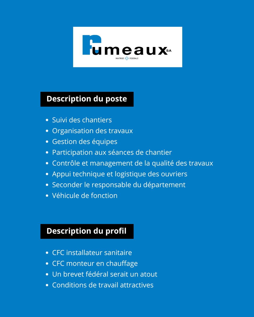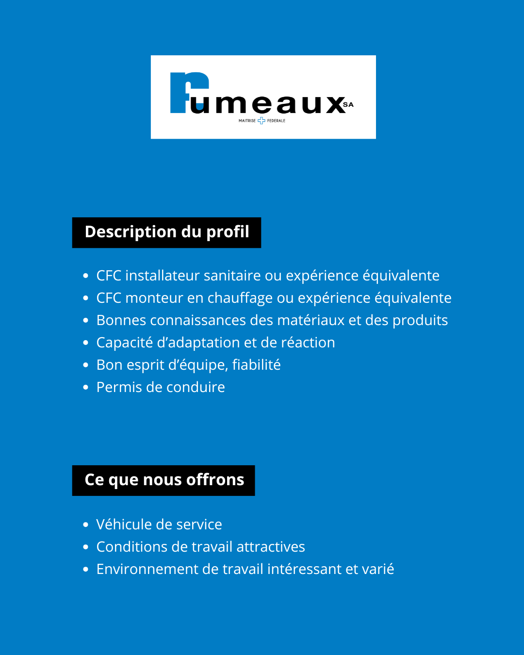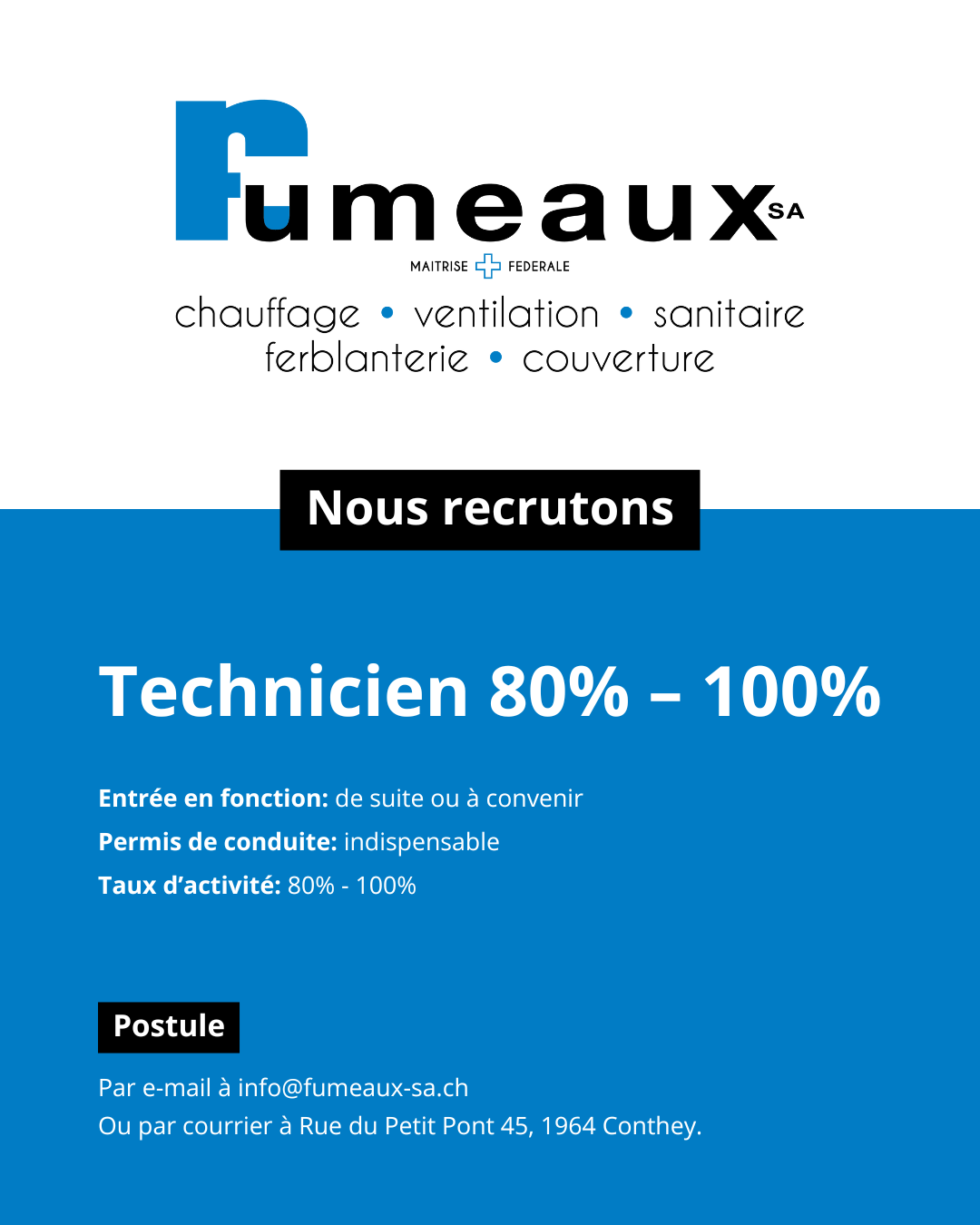 Chez Fumeaux SA, nous valorisons le savoir-faire, l’esprit d’équipe et l’envie de bien faire. Que vous soyez apprenti·e, jeune diplômé·e ou professionnel·le expérimenté·e, nous vous offrons un environnement de travail stimulant, des projets variés et de vraies perspectives d’évolution.